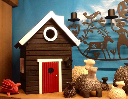 Vrolijke en verrassende kado-artikelen van jonge Finse en Zweedse ontwerpers. Onder andere originele vilten wijnkoelers, rakugebakken dierenfiguren en maskers, mooie zware metalen kandelaars van Bengt & Lotta, waxinelichthouders van IITTALA, kleurrijke polssieraden van wol en katoen en kleine schattige houten dieren.En niet te vergeten de grappige en populaire INGE LÖÖK-kaarten!